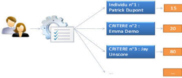 - Pour chaque valeur retenue (niveau), définition des points à attribuer,